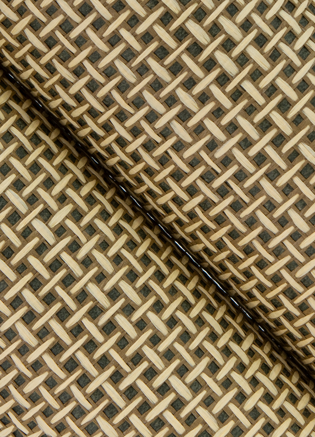 Traditional craftsmanship and modern elegance collide in this stunning grasscloth wallpaper. Cream fibers are framed by dark olive grasses laced in a loose cross-hatch against a charcoal grey background. Daiyu is an unpasted, paper weave grasscloth wallpaper.