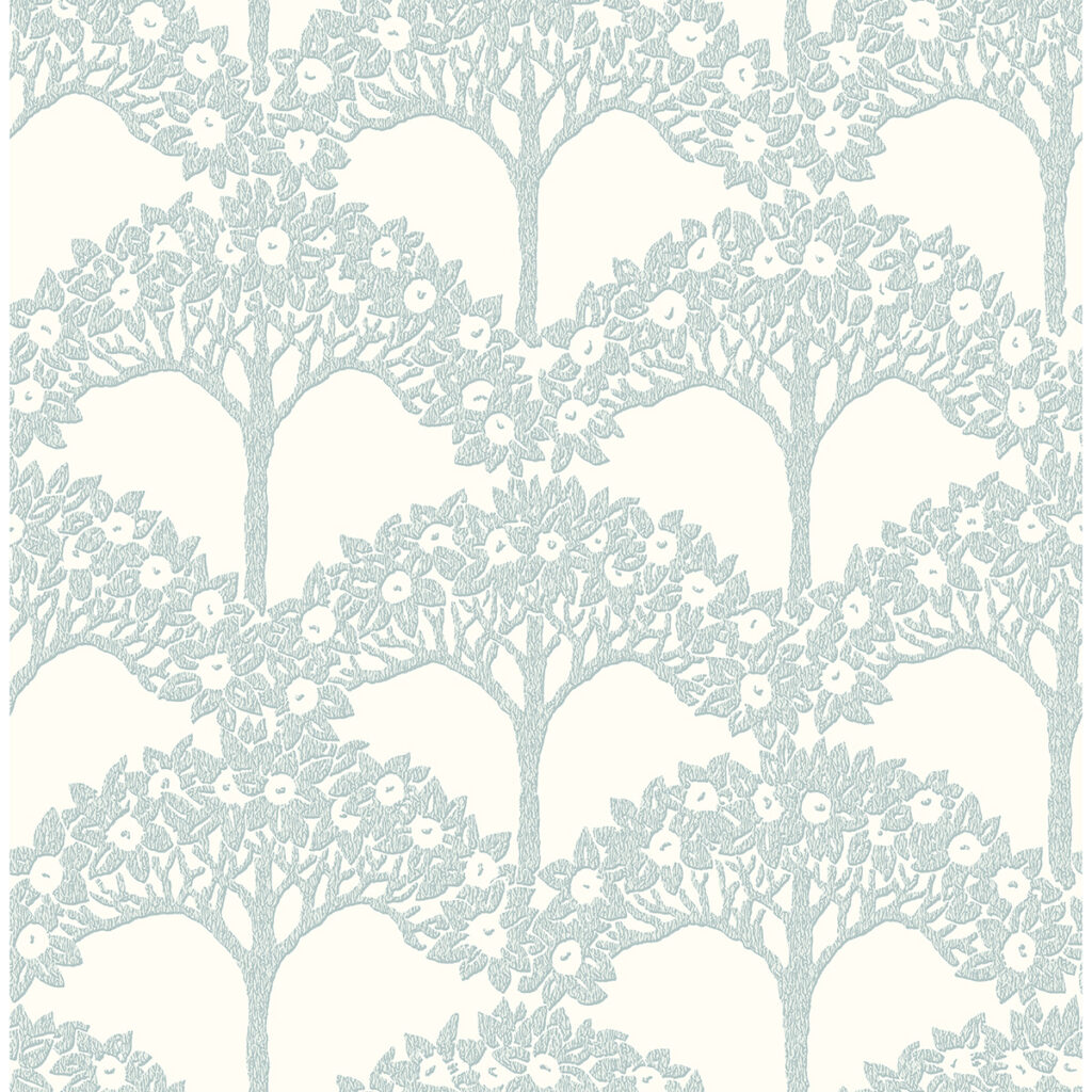 This elegant tree wallpaper adds hand-crafted ambiance to your home. The crackled, light blue of the trees brings an airy feel to this architectural design. Dawson is an unpasted, non woven wallpaper.