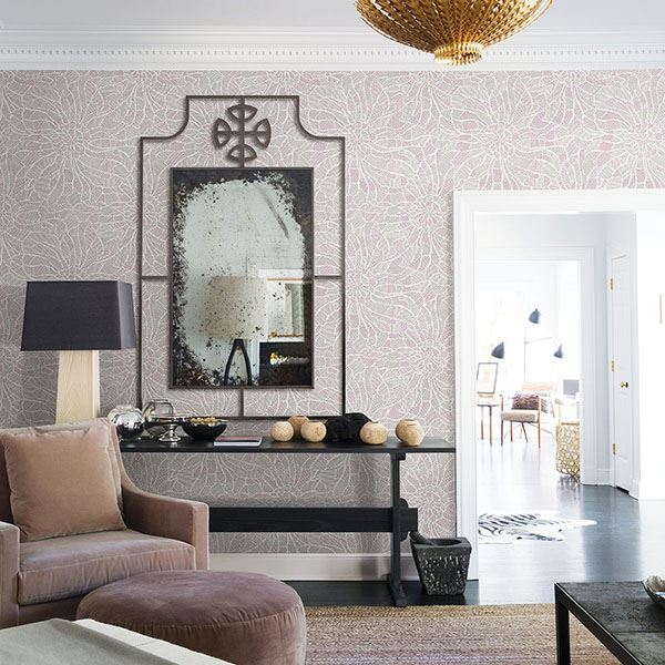 Alternating sections of lavender and heather purple lines come together to create a large-scale abstract floral pattern. The dynamic look of the wallpaper is enhanced with raised ink details. Daydream is an unpasted, non woven wallpaper.