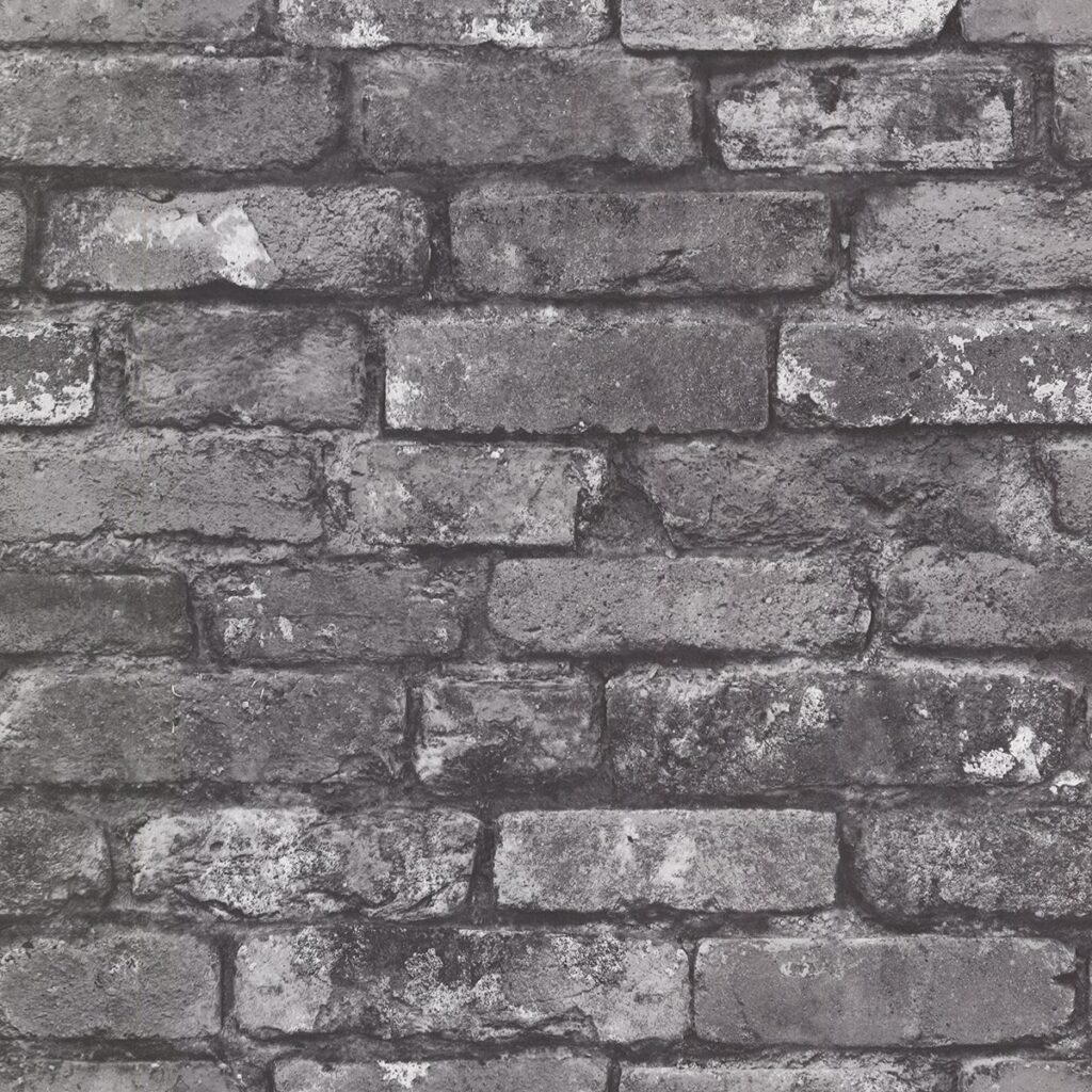 Moody and contemporary, this grey brick wallpaper has a weathered look. Detailed shading and light grey highlights emphasize its dimensional design. Debs is an unpasted, non woven wallpaper.