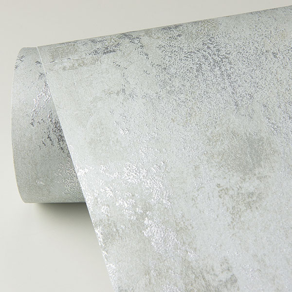 Enjoy the textural look of plaster with a chic, modern finish with this wallpaper! The blend of greys is accented by sectioned of sponged, metallic silver that catches the eye and the light. Deimos is an unpasted, non woven wallpaper.