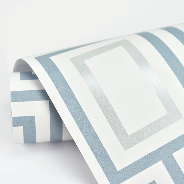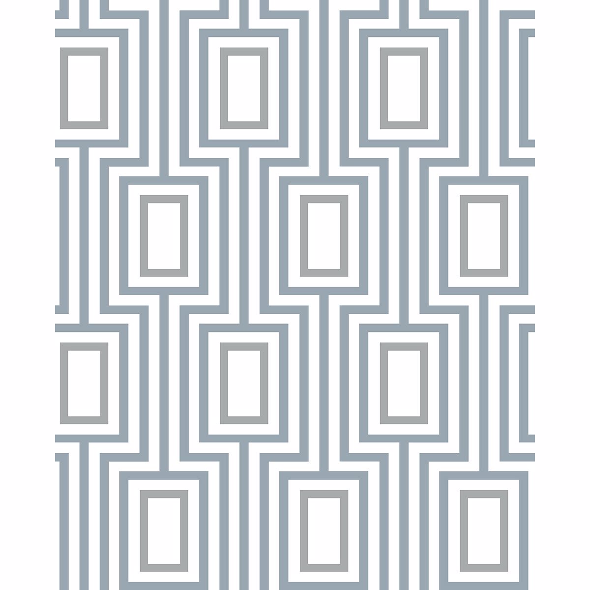 This retro-inspired, boxy geometric instantly draws the eye and visually heightens a space. The blue lines are bold next to the metallic silver boxes. Metro Mod is an unpasted, nonwoven wallpaper.