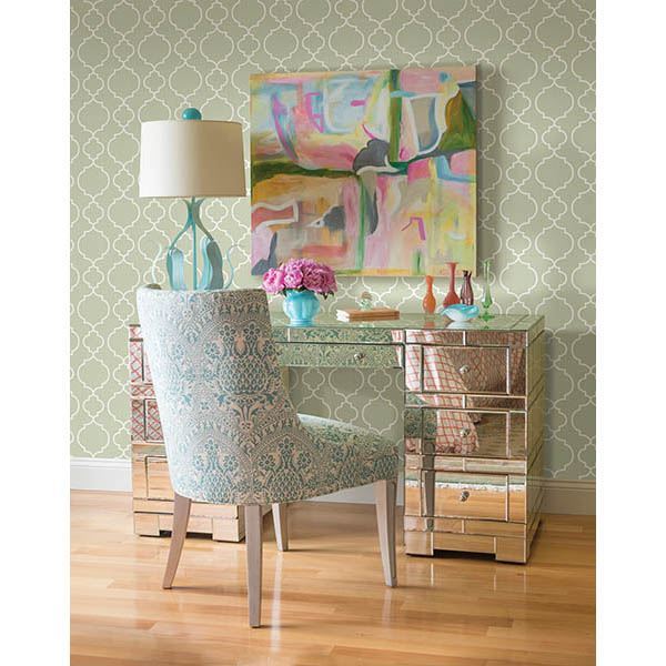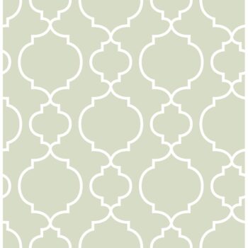 The beautiful sage green background on this quatrefoil wallpaper would look as amazing in a city apartment as it would a beach cottage. A unique design that is both modern and classic.