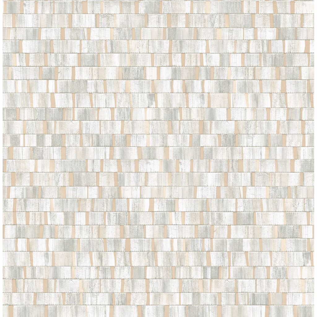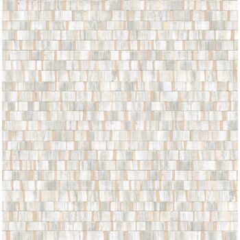 Adorn your walls with this dazzling geometric design. Distressed white rectangles, with sage undertones, pop against a champagne background, creating a dimensional design. Dobby is an unpasted, non woven wallpaper.