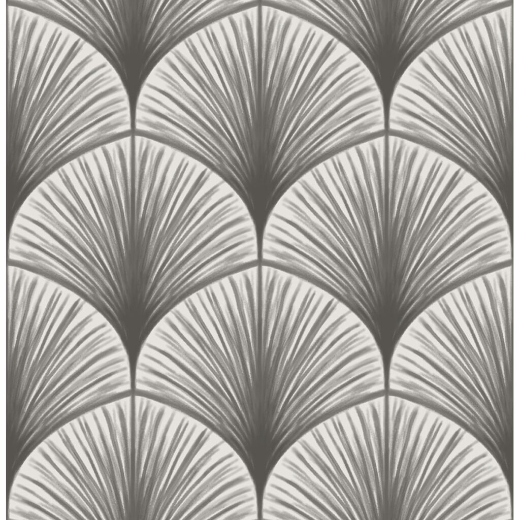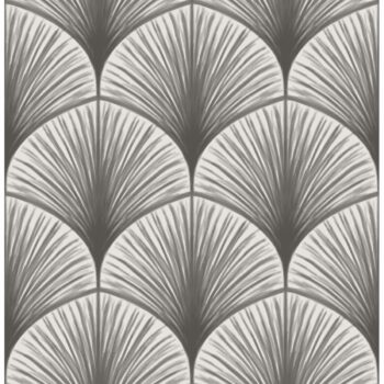 Inspired by palm fronds, this wallpaper has an elegant feel. The patterns fans out in tonal greys. Dusk is a non woven, unpasted wallpaper.