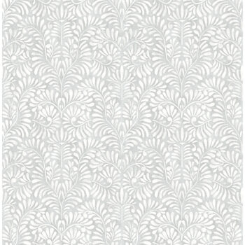 Antique elegance is given new life in this charming botanical wallpaper. Dense clusters of fiddlehead ferns slowly unfurl into one another, the white leaves richly offset by a sterling grey backdrop. Elma is an unpasted, non woven wallpaper.