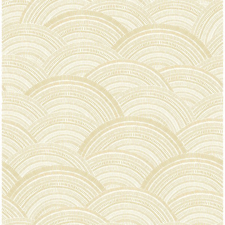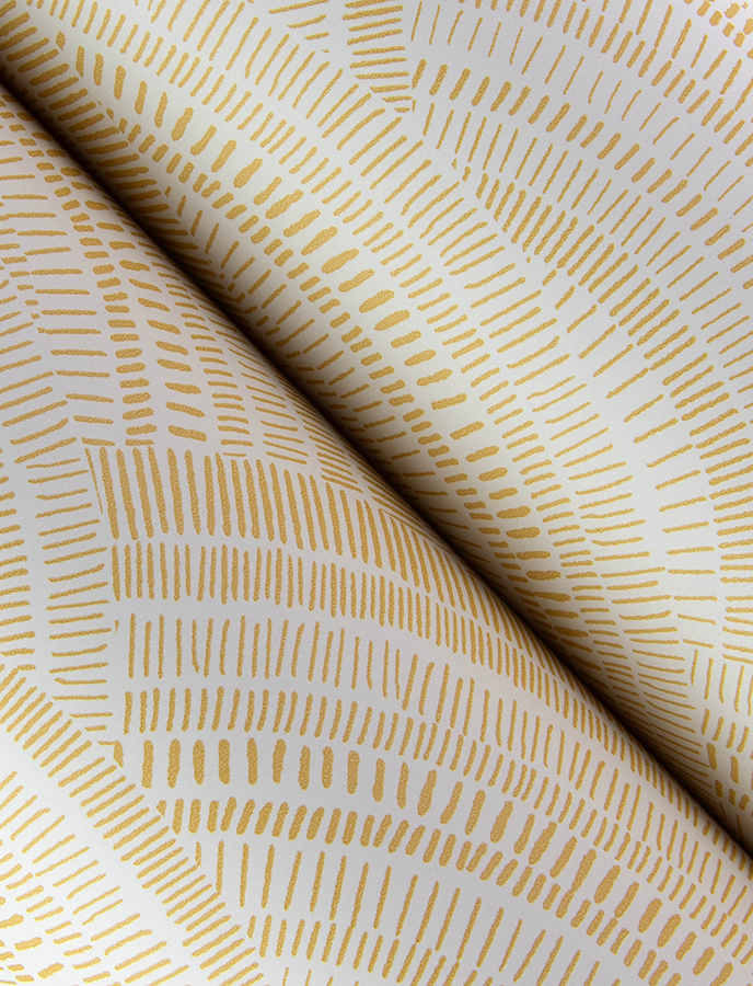 This artistic and whimsical wallpaper brings a dose of colorful cheer to interiors! Each overlapping arch is formed from dozens of buttery yellow dashes against a warm white backdrop. Encircle is an unpasted, non woven wallpaper measuring 20.5 inches wide by 33 feet long, covering approximately 56.4 square feet per roll.