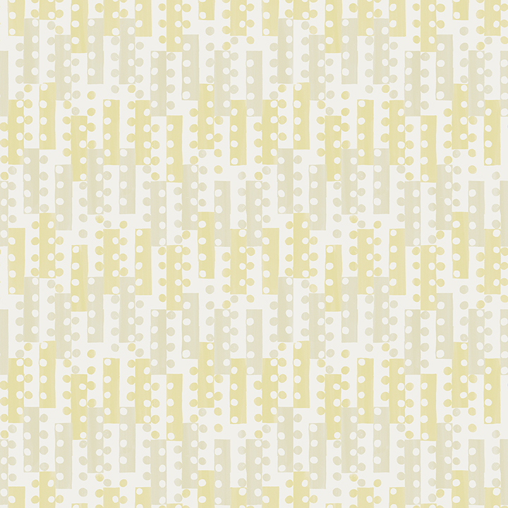 Small-scale geometric accents bring a playful yet sophisticated touch to your walls. Thin blocks decorated with dotted trim are inked in pale yellow and grey along a white backdrop. Erik is an unpasted, non woven wallpaper.