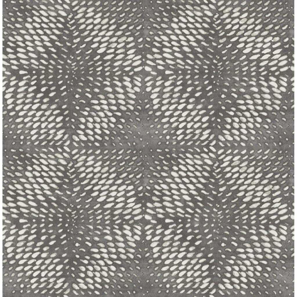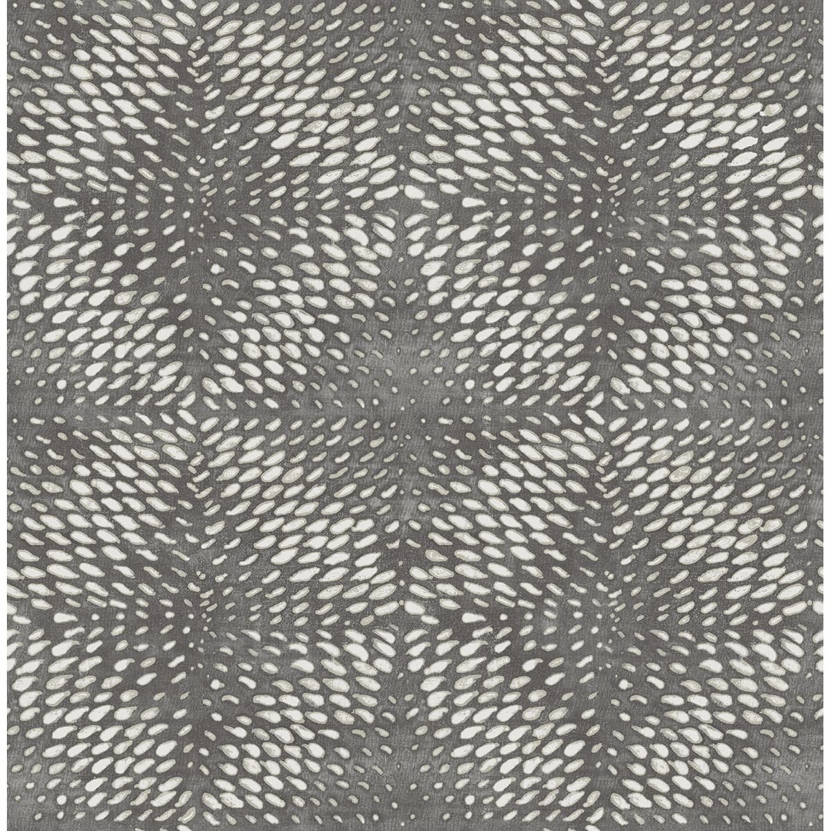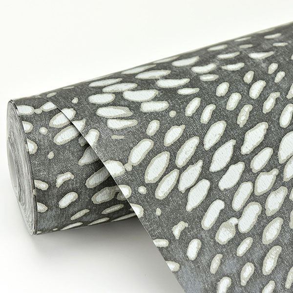Infused with flecks of mica, dark pewter shimmers like silver under a lively abstract design. The contemporary raised ink printing technique to the white and taupe pattern is in line with the modern look of the wallpaper. Ethos is an unpasted, non woven wallpaper.