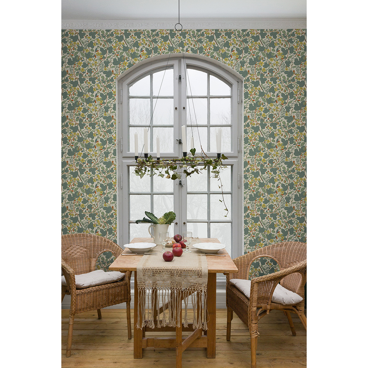 This charming botanical is ripe with design possibilities! The green, leafy vines are loaded with ripening fruits and veggies, while the bright yellow blossoms promise a larger harvest ahead. Ewald is an unpasted, non woven wallpaper.