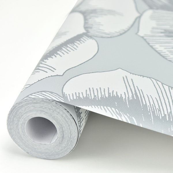 Ethereal and airy, this wallpaper’s background has the faintest touch of seafoam. Metallic ink on the grey flowers flashes silver in the light. Fanciful is a non woven, unpasted wallpaper.