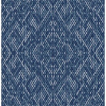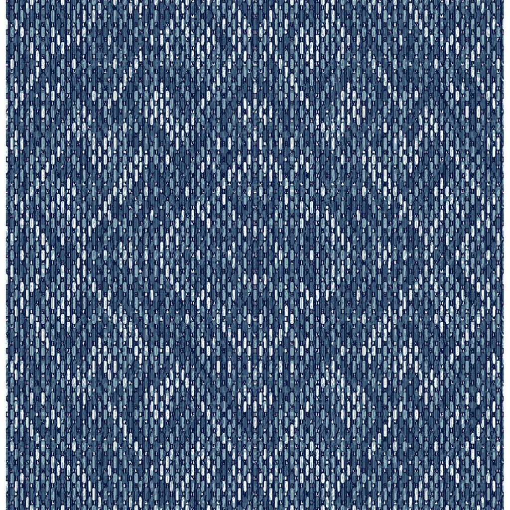 Enjoy rich blues and textural dimension in this intricate geometric design. This tapestry of diamonds is formed by individual stitches in shades of blue and white. Felix is an unpasted, non woven wallpaper.
