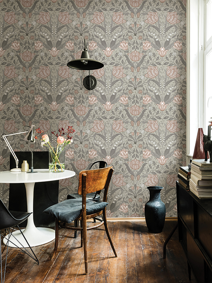 Filippa Grey Tulip Wallpaper
