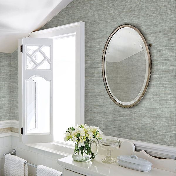 A raised ink texture and beautifully layered hues channel all the refined elegance of real grasscloth, without the fragility of organic fibers. The warm grey base with threads of pale blue creates a neutral and versatile canvas to style a room around. Faux Grass is an unpasted, nonwoven wallpaper.