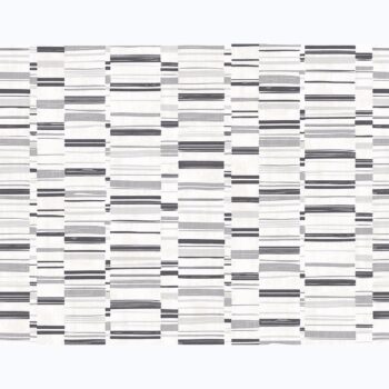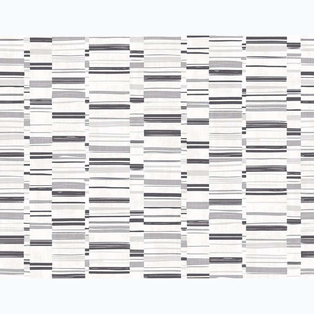 A linen inspired wallpaper with an abstract edge. Black and grey stripes effortlessly complement a heavily textured, white background. Fresnaye is an unpasted, fabric backed vinyl wallpaper.