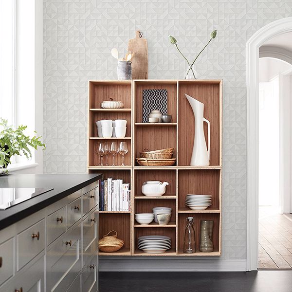 Featuring hundreds of miniature triangles, this wood inspired wallpaper has a contemporary edge. Its textured design is accented by light grey and off-white hues. Gallerie is an unpasted, non woven wallpaper.