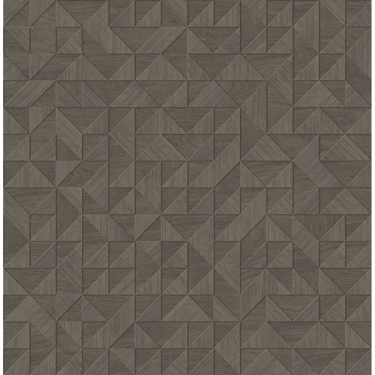 Hundreds of miniature triangles come together to create a dazzling geometric wallpaper. Various shades of taupe and a wood inspired design lend to its rustic chic style. Gallerie is an unpasted, non woven wallpaper.