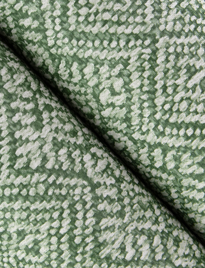 This mesmerizing geometric design mimics the knotted details of hand-woven tapestries. The intricate geometric design slowly unfurls in alternating forest and pale green, a rough texture emulating the feel of wool. Gallivant is an unpasted, non woven wallpaper measuring 20.5 inches wide by 33 feet long, covering approximately 56.4 square feet per roll.