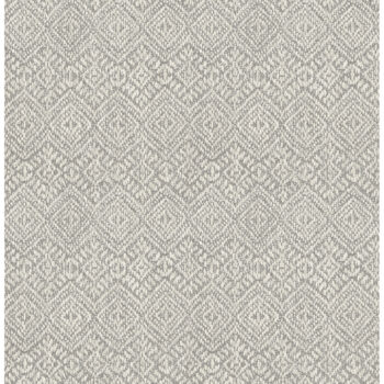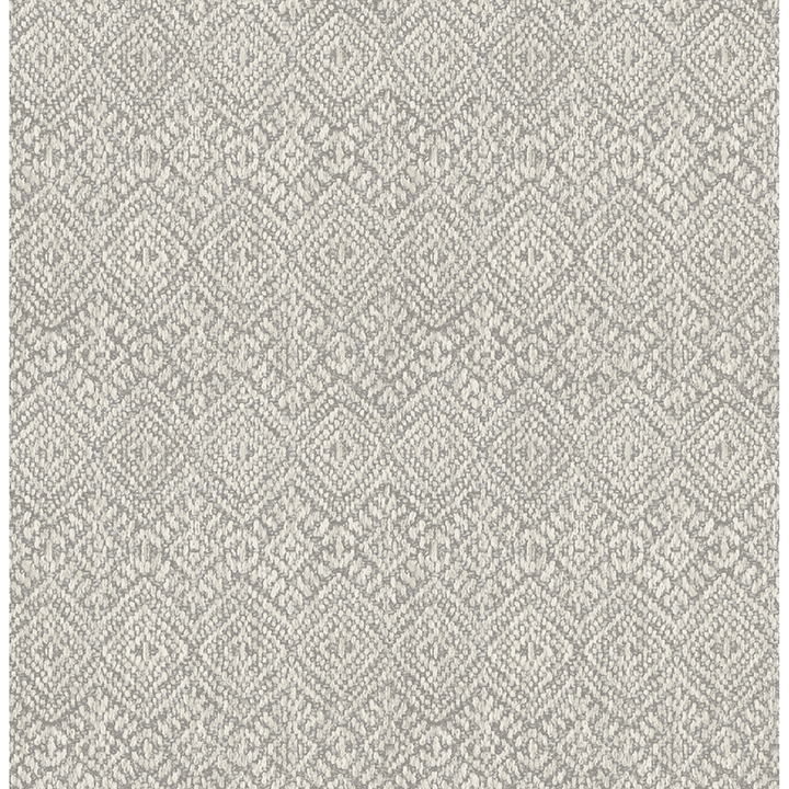 This mesmerizing geometric design mimics the knotted details of hand-woven tapestries. The intricate geometric design slowly unfurls in alternating white and grey, a rough texture emulating the feel of wool. Gallivant is an unpasted, non woven wallpaper measuring 20.5 inches wide by 33 feet long, covering approximately 56.4 square feet per roll.