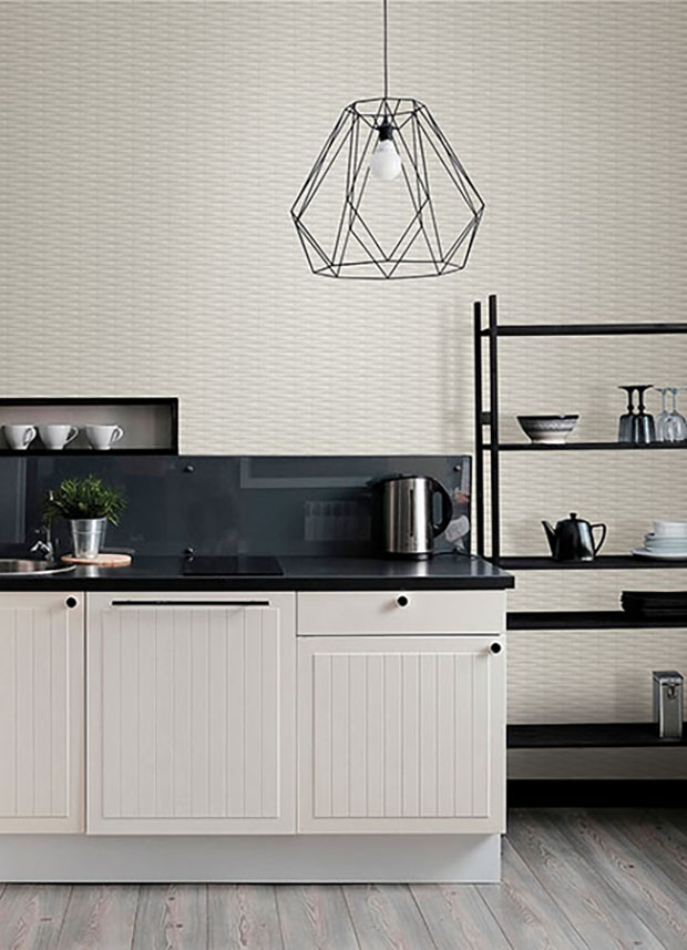Enjoy modern dimension with this chic white geometric wallpaper. The angular stripes are stacked and shaded in a way that adds a subtle 3D effect to your walls. Gator is an unpasted, vinyl wallpaper.