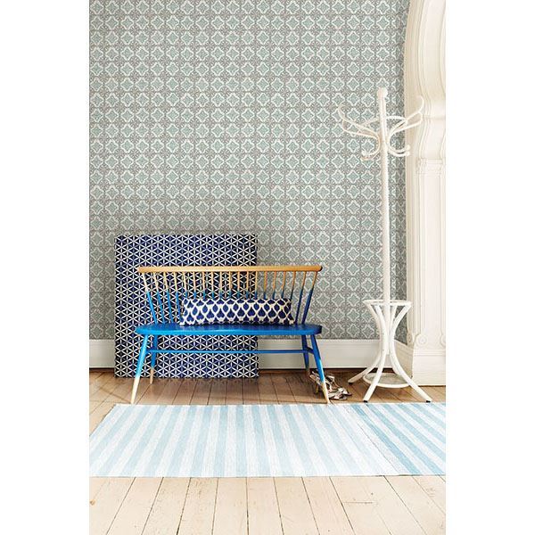 Bringing the chic look of a tiled wall to your space, this turquoise and grey geometric is done in a perfect midscale pattern. Layered in a stylish patina effect, this ornate wallpaper is forever timeless.