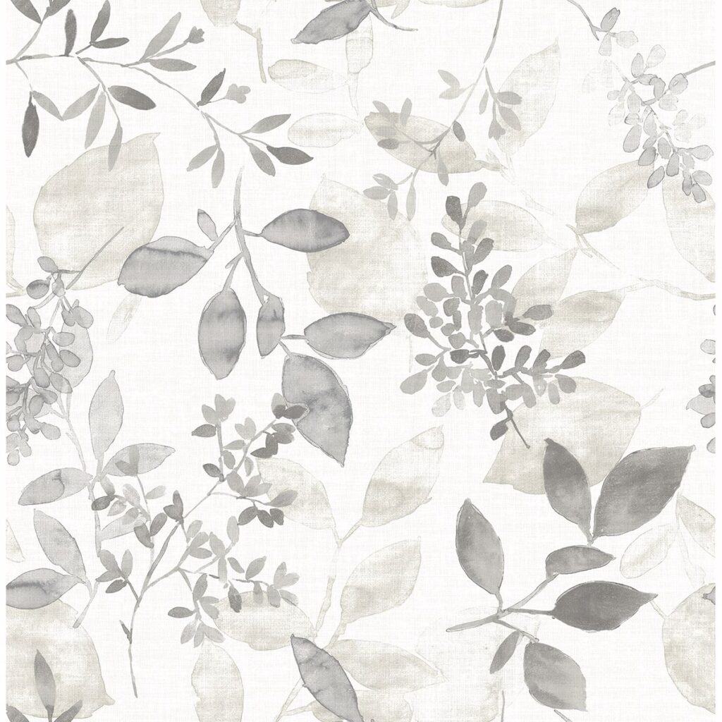 Create a serene, ethereal mood in your home with this watercolor wallpaper. The botanical design embraces the beauty of nature and mimics the way the sun illuminates leaves. The greyscale color palette is modern and versatile.