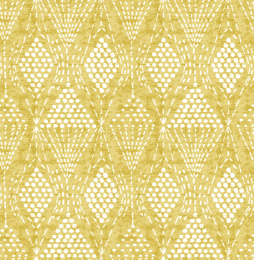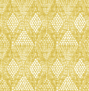 The sunny, bohemian energy of this chic geometric will instantly brighten your home. The golden-yellow hues sport a slight tie-dye effect, while the dots and dashes of the white diamond pattern are accented by raised inks. Grady is an unpasted, non woven wallpaper.