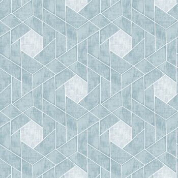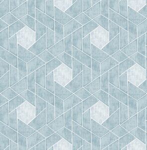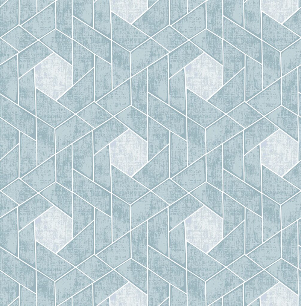 Distressed aqua geometrics with silver details combine for a spectacular geometric design. Granada’s abstract flair and stunning color palette create a sophisticated yet edgy look. Granada is an unpasted, non-woven wallpaper.