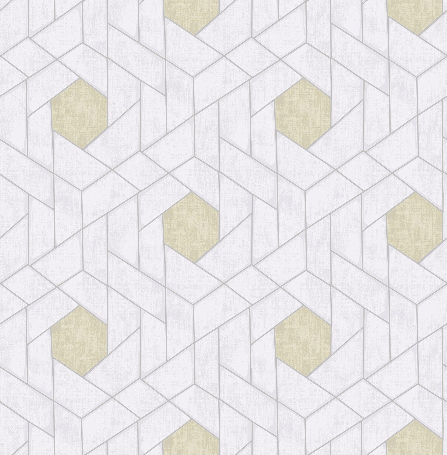Contemporary with a twist, this abstract geometric design gives walls a touch of glam. Accented with distressed tan honeycombs, this wallpaper is simply dazzling. Granada is an unpasted, non-woven wallpaper.