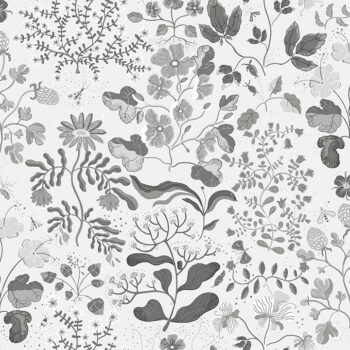 Whimsical Scandinavian-inspired florals are modernized with a monotone color palette in this playful wallpaper. The variety of wildflowers are inked in shades of grey, white, and black against a pale grey backdrop. Groh is an unpasted, non woven wallpaper measuring 20.9 inches wide by 33 feet long, covering approxiamately About 57.5 square feet square feet per roll