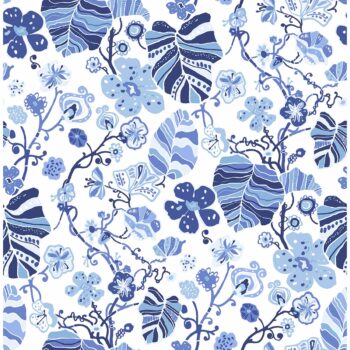 Beautiful botanicals blossom in a variety of blue hues in this floral wallpaper. Its nature inspired design effortlessly melds Jacobean and eclectic styles to create a whimsical print. Gwyneth is an unpasted, non woven wallpaper.