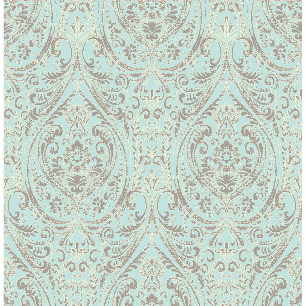 Create a dazzling interior with this beautiful turquoise wallcovering. With a cultural vibe and bohemian energy, this elegant damask makes a timeless wall accent.