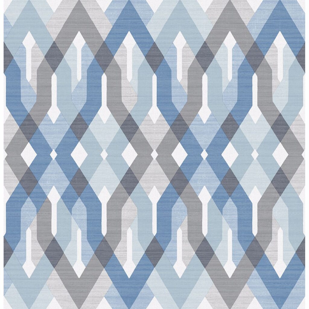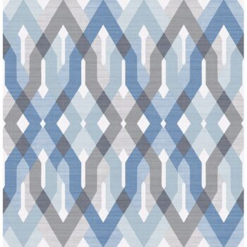 Art deco gets a modern island flair in this geometric lattice wallpaper. Bold diamonds in shades of hazy grey and dusty blue intertwine in perfect harmony. A sheer patterned overlay softens the design.