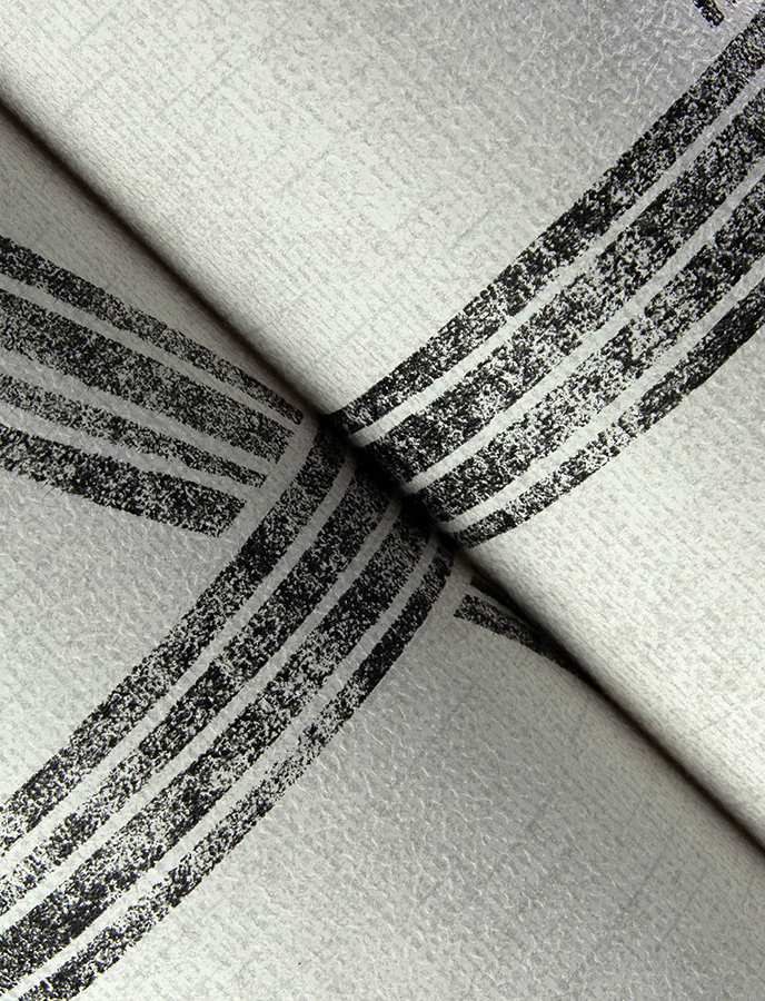 Enjoy the rustic elegance of linen stripes, but with added flair. This faux fabric wallpaper features a blend of vertical and curving black bands against a textured white backdrop. Harlow is an unpasted, non woven wallpaper measuring 20.5 inches wide by 33 feet long, covering approximately 56.4 square feet per roll.