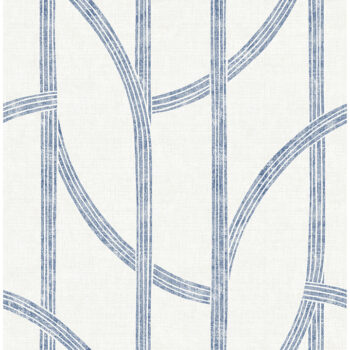 Enjoy the rustic elegance of linen stripes, but with added flair. This faux fabric wallpaper features a blend of vertical and curving indigo bands against a textured white backdrop. Harlow is an unpasted, non woven wallpaper measuring 20.5 inches wide by 33 feet long, covering approximately 56.4 square feet per roll.