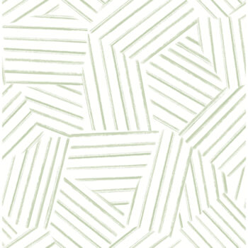 Airy and inviting, this geometric design adds a hint of color and movement to your walls. Wide-spaced lines of sage green are seemingly interwoven together to form abstract shapes along a white backdrop. Helene is an unpasted, non woven wallpaper.