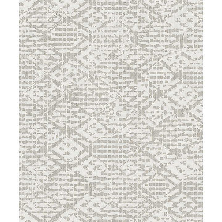 Drape your walls in the silvery sophistication of this geometric wallpaper! The diamond motif has a slight tribal feel, the details finished in dense silver glitter and the light grey background infused with a subtle silver glow. Helene is an unpasted, non woven wallpaper.
