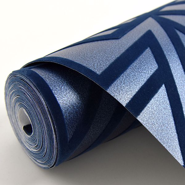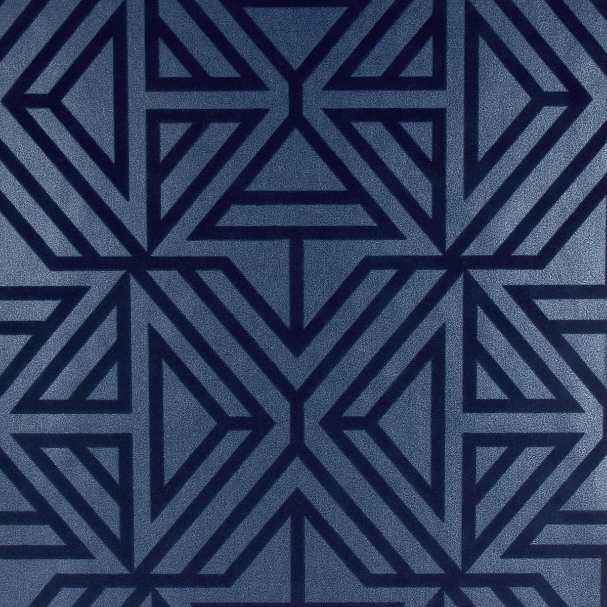 Timeless yet fresh, this rich blue wallpaper is simply stunning. The geometric pattern is flocked over a pearlescent background. Helios is an unpasted, non woven wallpaper.