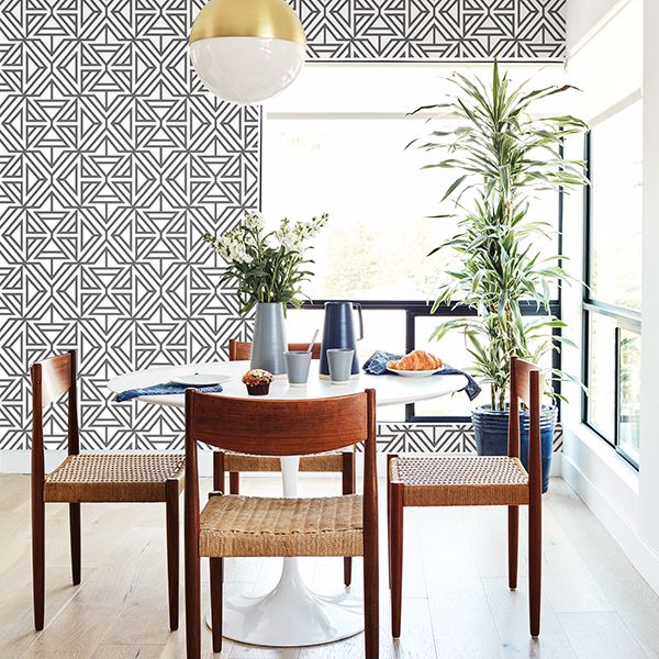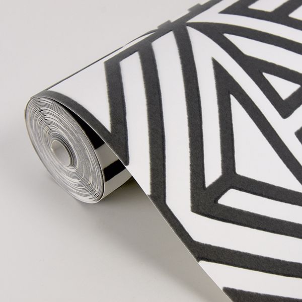 Velvet-like flocking gives this contemporary wallpaper a luxurious flair. The taupe tones of the geometric pattern effortlessly complement the off-white background. Helios is an unpasted, non woven wallpaper.