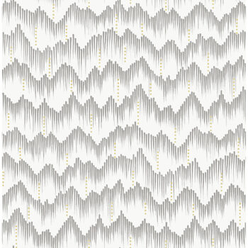 This artistic geometric wallpaper brings both movement and intrigue to interiors. The zigzag lines are formed from individual grey brushstrokes accented by occasional lines of golden yellow dots. Holmby is an unpasted, non woven wallpaper measuring 20.5 inches wide by 33 feet long, covering approxiamately About 56.4 square feet square feet per roll