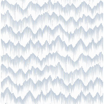 This painterly wallpaper brings a layer of calm to your interiors. The rows of zigzags are formed by individual pale blue brushstrokes, accented by sporadic columns of grey dots. Holmby is an unpasted, non woven wallpaper measuring 20.5 inches wide by 33 feet long, covering approxiamately About 56.4 square feet square feet per roll