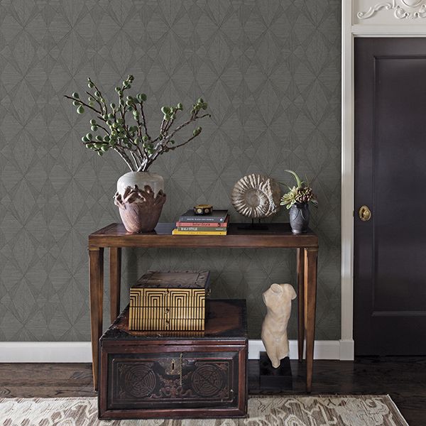 Intrinsic Dark Grey Geometric Wood Wallpaper