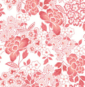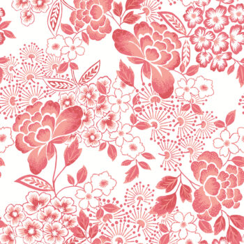 This dreamy floral wallpaper is bursting with romantic charm. A variety of small and large blooms are inked in shades of coral-pink against a crisp white backdrop. Irina is an unpasted, non woven wallpaper.