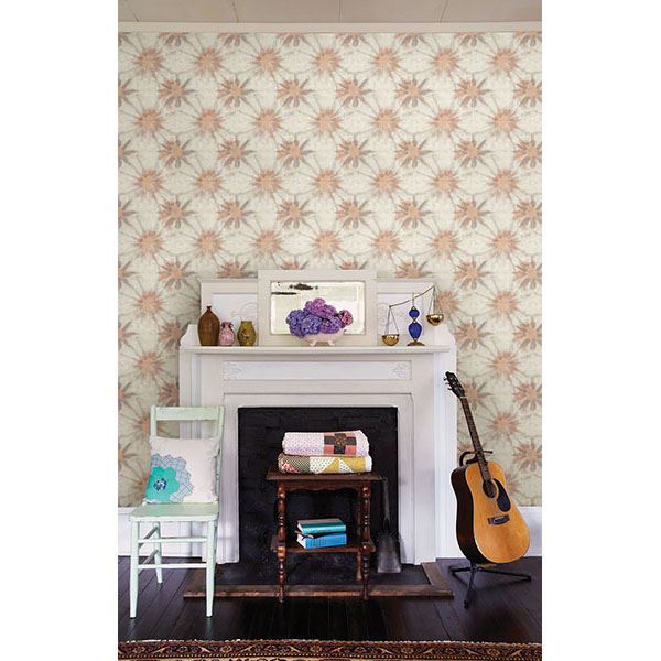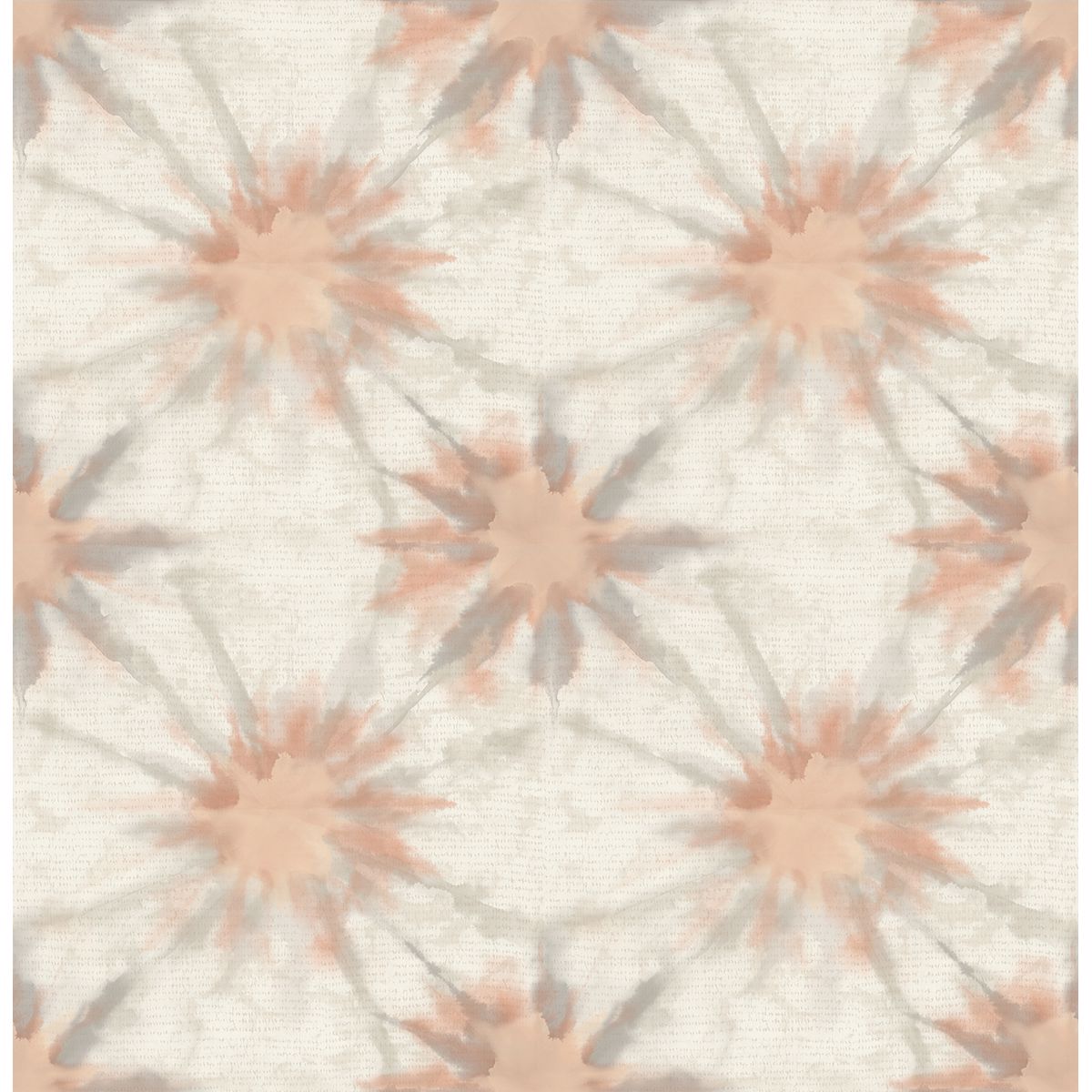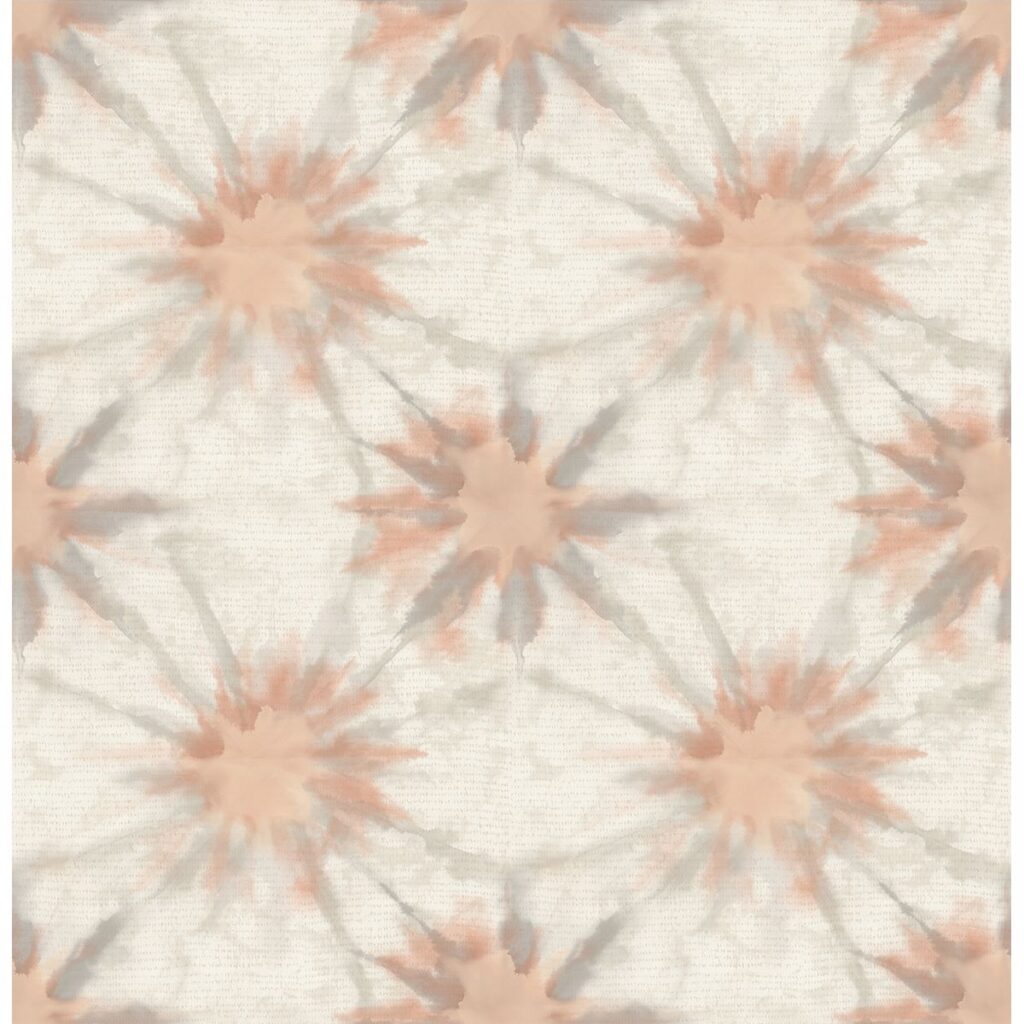 A beautiful shibori print in warm tones of coral and grey. This dreamy wallpaper has an ethnic spirit that brings a captivating energy to any and all spaces in your home.