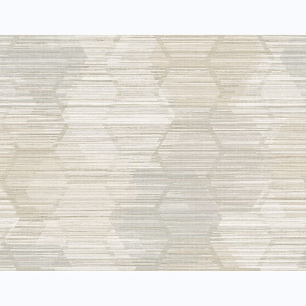 Wheat, cream and subtle light blue accents effortlessly meld in this faux grasscloth print. A honeycomb pattern adds dimension and a contemporary touch to this texture inspired design. Jabari is an unpasted, acrylic coated paper wallpaper.