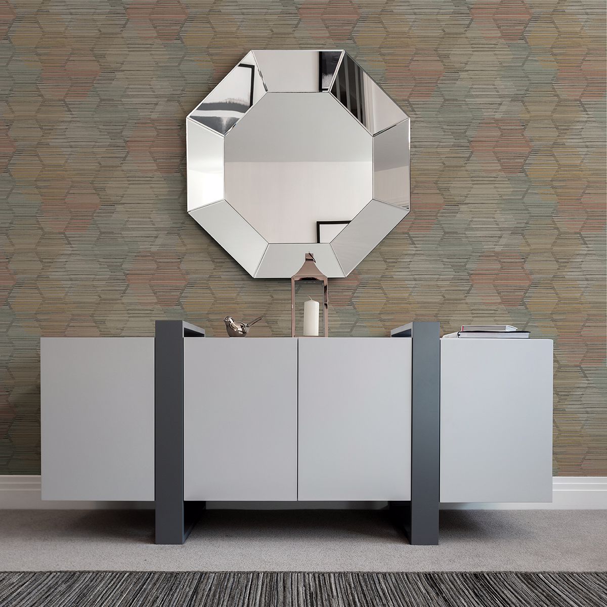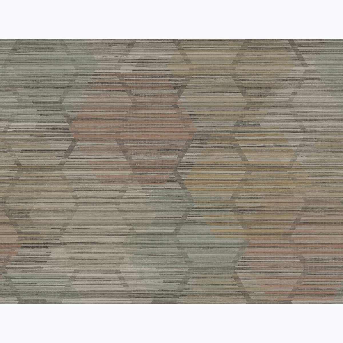 Get the look of grasscloth with this faux effects wallpaper. A honeycomb pattern creates a contemporary look, while rust, teal, and wheat hues add touches of color to this texture inspired design. Jabari is an unpasted, acrylic coated paper wallpaper.