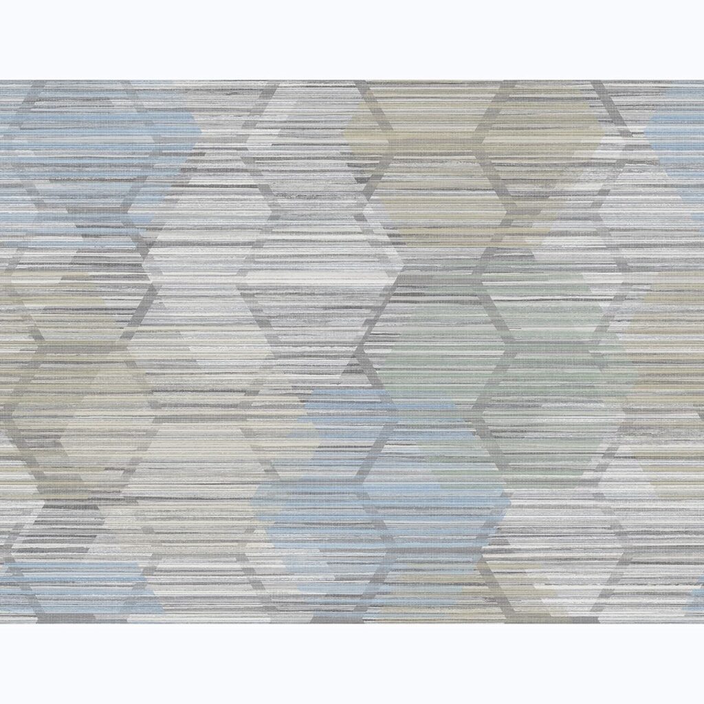 Complete with light blue and seafoam accents, this grasscloth inspired design has a dimensional effect. A honeycomb pattern peeks through its distressed, woven print. Jabari is an unpasted, acrylic coated paper wallpaper.