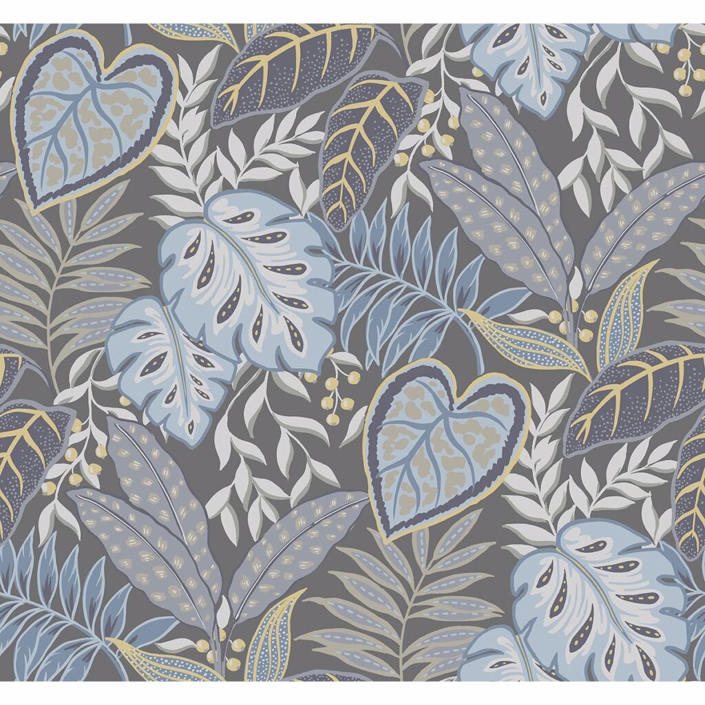 Add a touch of tropical flair to a room with this lively botanical wallpaper. The matte blue and grey color palette lends a sophisticated twist to the pattern. Jasmine is an unpasted, nonwoven wallpaper.