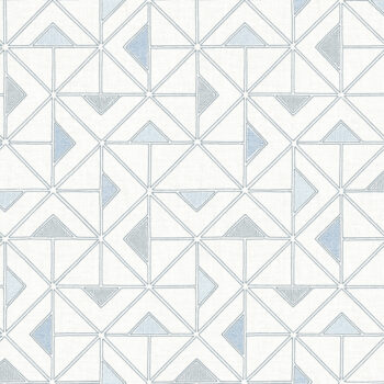 A delightful blend of retro and fresh, modern flair, this geometric wallpaper brings character and charm to your interiors. The hand-drawn triangular motif is accented with blue insets along a cool white faux linen backdrop. Jekyl is an unpasted, non woven wallpaper.