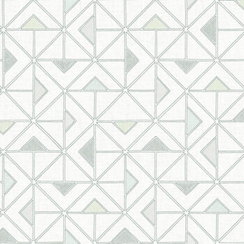 This artistic geometric wallpaper adds fresh inspiration to retro stylings! Hand-drawn triangular tiles are sporadically embellished with green, grey, and light blue insets, all set against a creamy-white faux linen backdrop. Jekyl is an unpasted, non woven wallpaper.